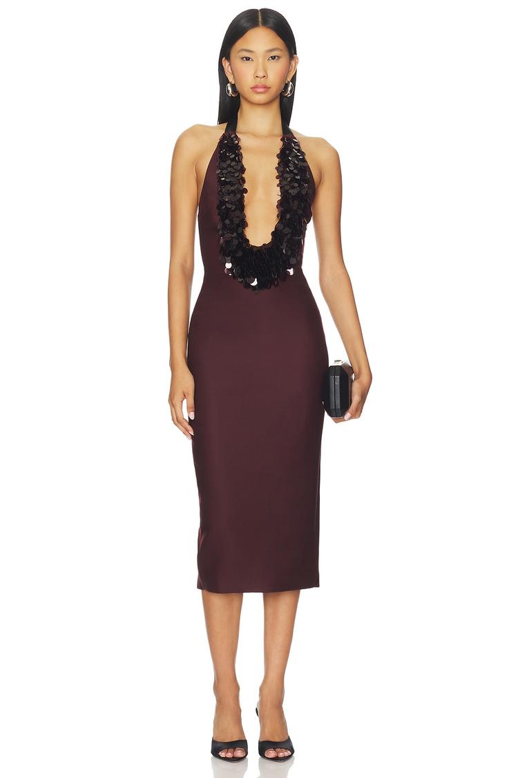 PAYETTE EMBROIDERED NECKLINE HALTER DRESS