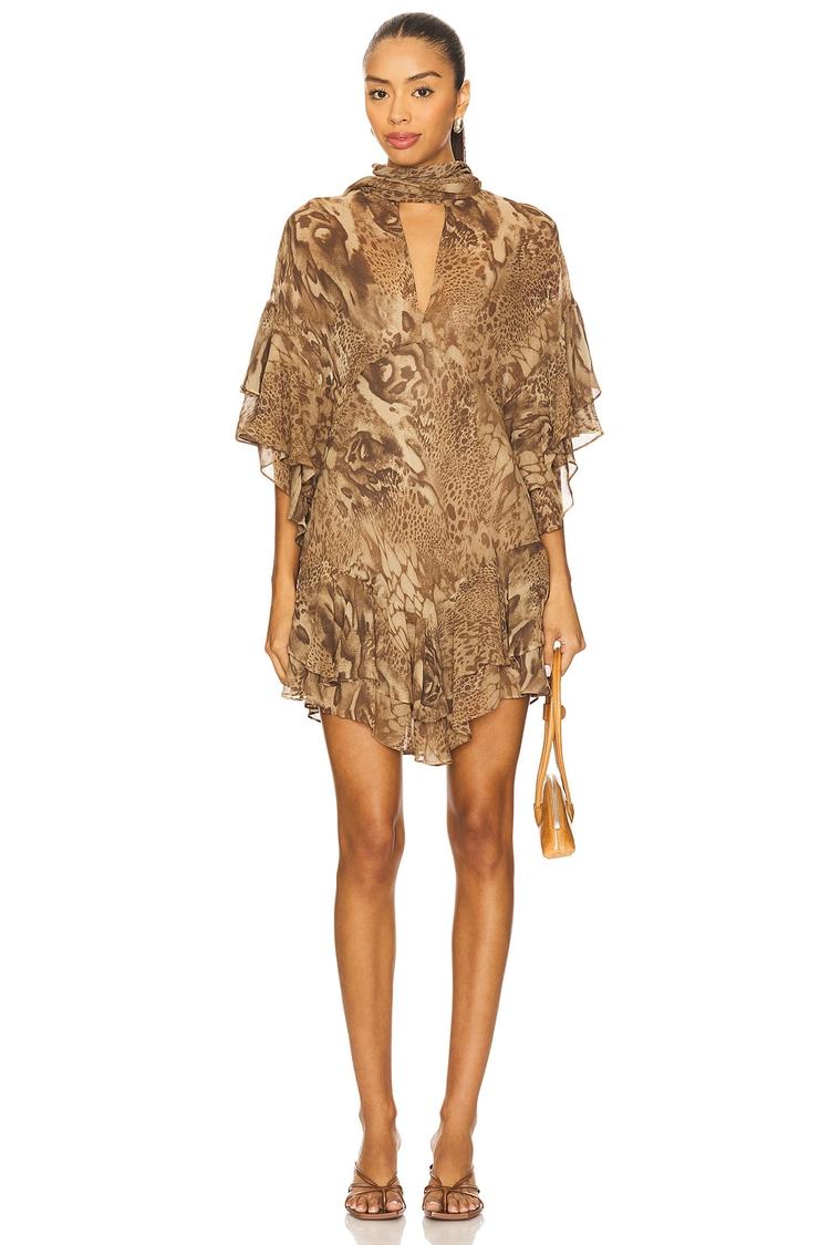 brown abstract mini dress
