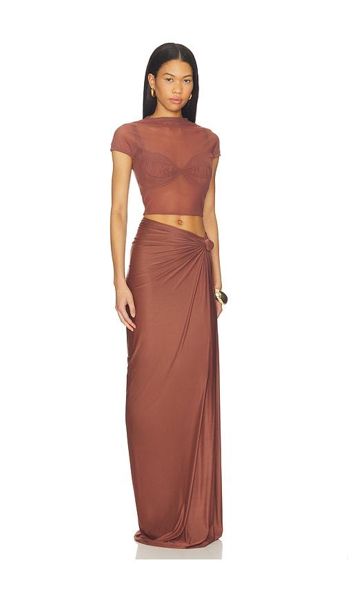 DEME BY GABRIELLA DOVE DRESS IN BROWN.