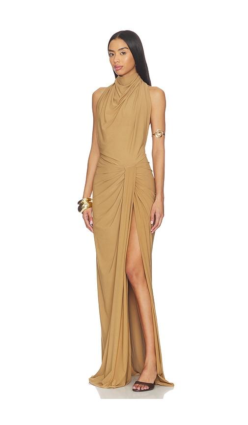 DEME BY GABRIELLA THE BEATRIX DRESS IN BEIGE.