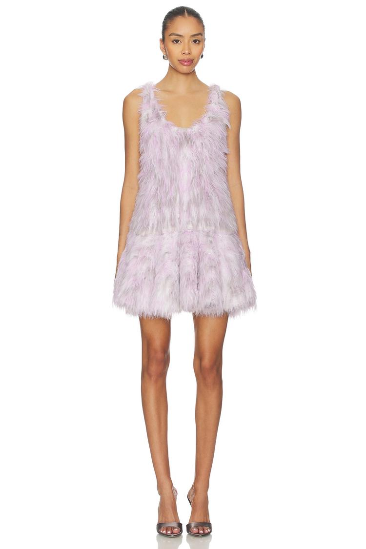 Soft lilac hues and a playful ruffled hem define this mini swing dress crafted from a heavyweight brushed knit blend of nylon, acrylic, and wool. Featuring a sleeveless design with wide straps and a round neckline, the loose fit and pleated skirt bring effortless movement and edgy modernity. Ideal for autumn and winter nights, this slip-on dress makes a striking choice for cocktail parties, night outs, and stylish gatherings. The all-over ruffle detailing adds texture and charm to your evening wardrobe.
