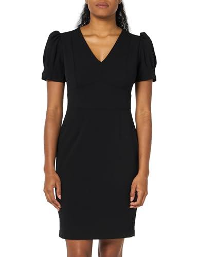 DKNY WOMEN'S V-NECK SHORT PUFF SLEEVE DRESS, BLACK, 8