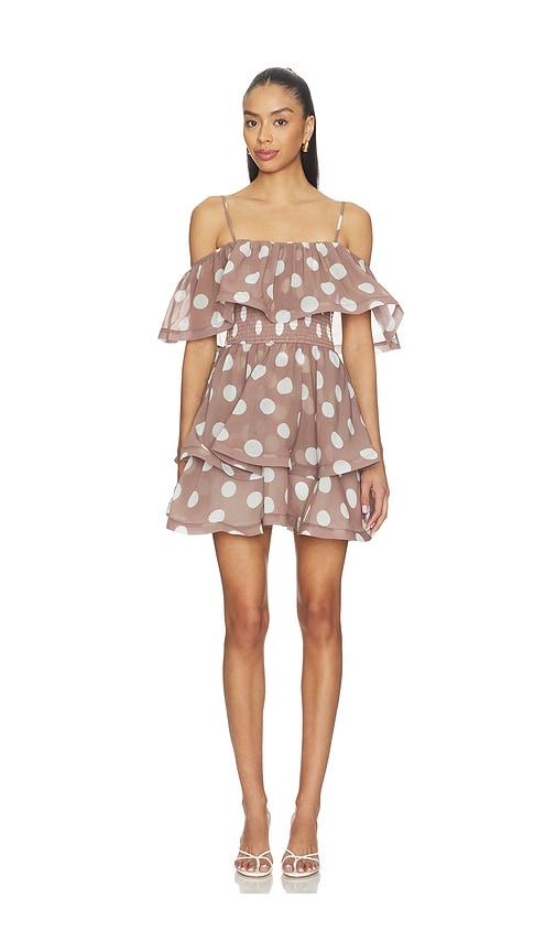 ELLIATT SOLA POLKA DOT MINI DRESS IN BROWN.