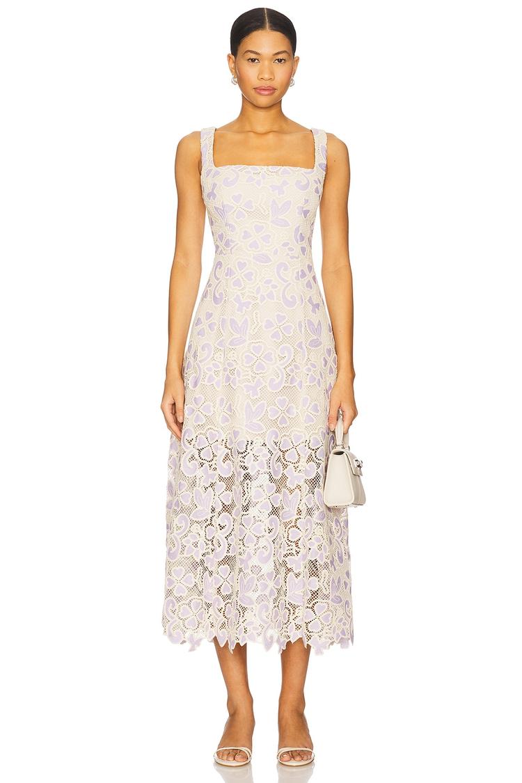 Heavyweight floral lace with a scalloped hem creates a refined silhouette in this elegant midi dress. The square neckline and wide straps complement the sleeveless, regular fit shift design, making it perfect for spring and summer occasions. A back zipper closure ensures a smooth, covered back finish. Ideal for cocktail parties, brunch dates, or romantic evenings, this classic piece blends timeless style with textured lace sophistication.