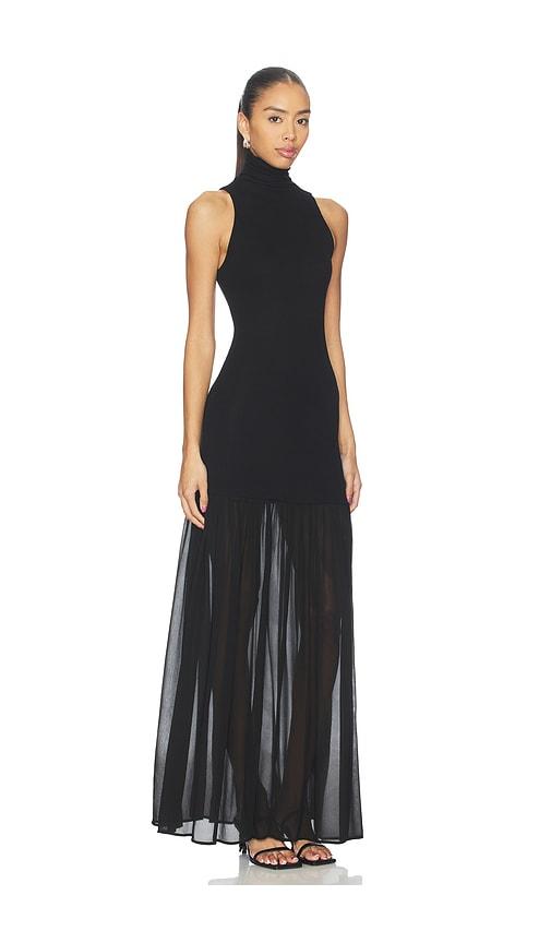 ENZA COSTA AIRY HALTER TURTLENECK DRESS IN BLACK.
