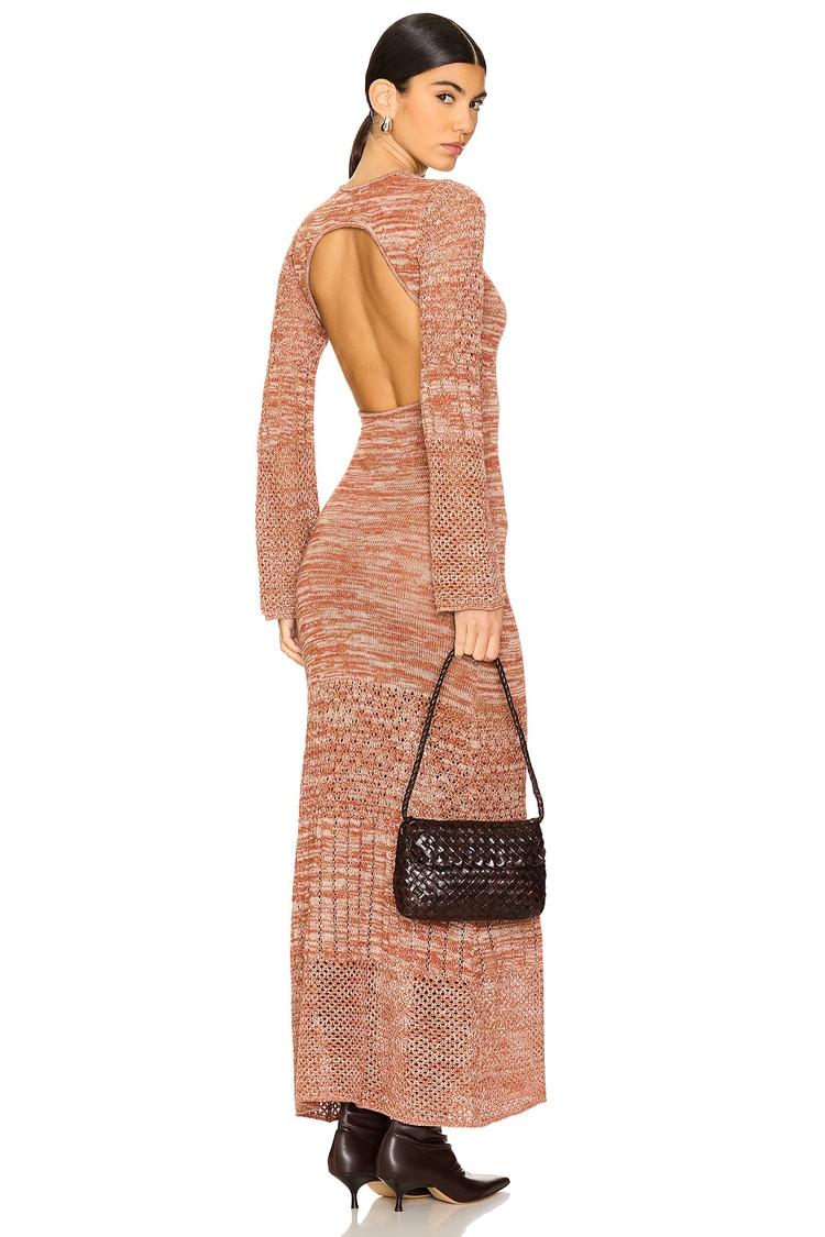 Soft cotton knit fabric shapes a fitted column silhouette in this maxi dress, featuring a striking open back cut-out detail that adds modern flair. The long sleeves and round neckline balance the bold back, creating an effortlessly chic look ideal for casual outings, brunch dates, or relaxed autumn strolls. Lightweight and breathable, this dusty orange dress is a versatile wardrobe staple combining comfort with contemporary style.