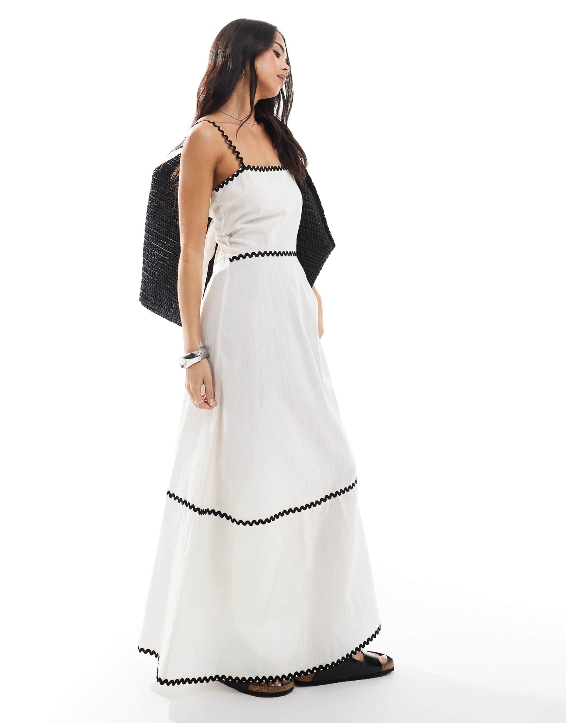 ESMÉE EXCLUSIVE RIC RAC MAXI BEACH DRESS IN WHITE AND BLACK