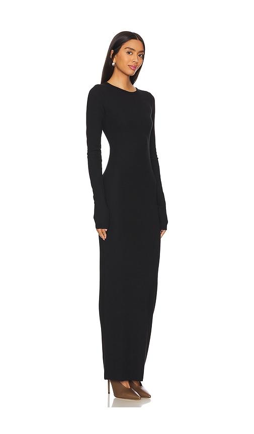 ETERNE LONG SLEEVE CREWNECK MAXI DRESS IN BLACK.