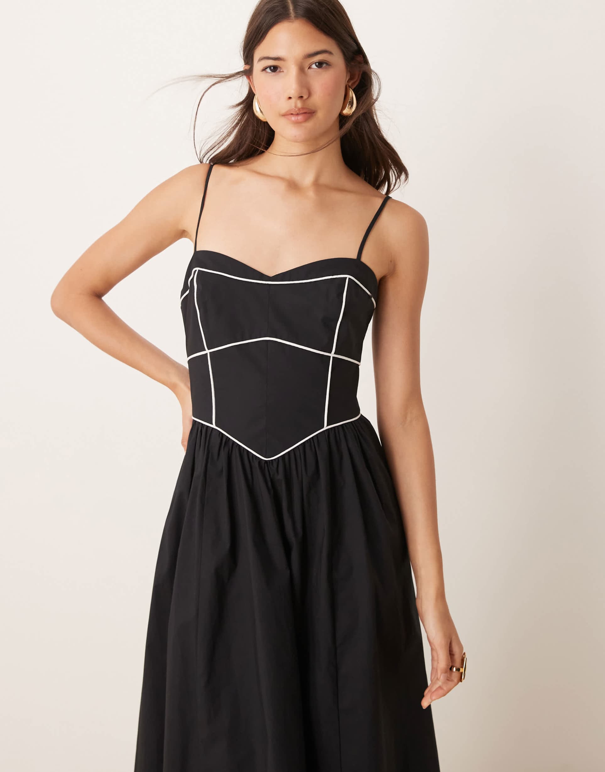 EVER NEW CONTRAST STITCH DROP HEM MAXI DRESS IN BLACK