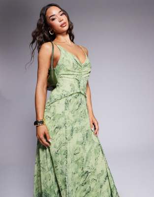 Lightweight polyester fabric and a flowing maxi length combine effortlessly in this trendy slip dress featuring a subtle snake print. The V-neckline and spaghetti straps with adjustable functionality offer a flattering and comfortable fit, while delicate ruffle detailing at the front adds a touch of playful texture. Perfectly suited for spring and summer, this regular fit dress transitions seamlessly from evening cocktails to date nights or stylish nights out with friends.
