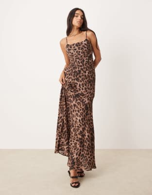 EVER NEW EXPOSED CUP CORSET MAXI DRESS IN LEOPARD PRINT