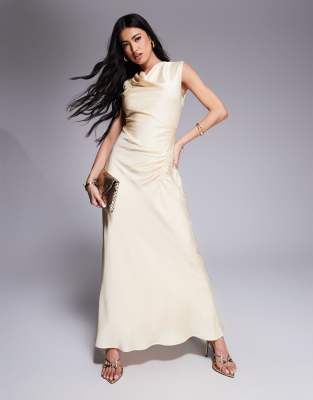 EVER NEW HIGH NECK SATIN MAXI DRESS IN LEMON