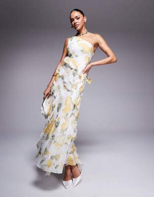 EVER NEW ONE SHOULDER RUFFLE MAXI DRESS IN YELLOW FLORAL