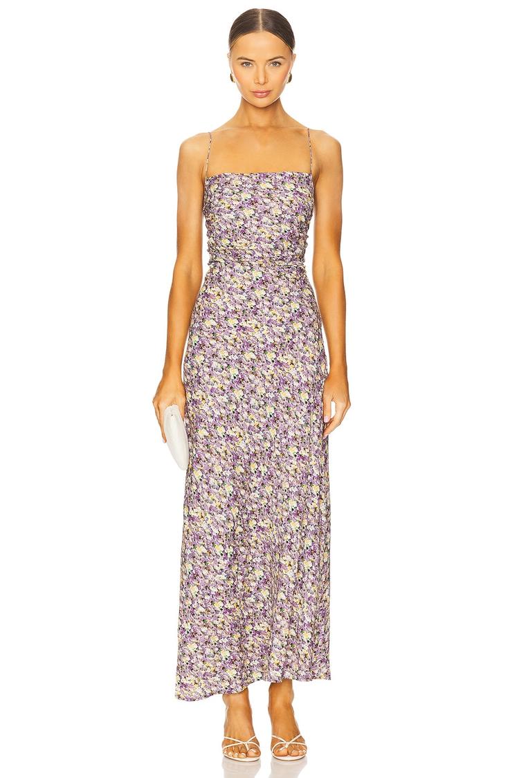 Soft rayon voile fabric and a column silhouette create an effortlessly chic maxi dress perfect for warm weather. The straight neckline and slim fit highlight a ruched, smocked bodice with adjustable spaghetti straps for comfort and style. Adorned with an all-over floral print in muted purples, pinks, and greens, this dress flows to a clean hemline, ideal for casual brunches, vacations, or relaxed spring and summer days. Its pullover design and partially lined bust ensure easy wearability and light coverage.