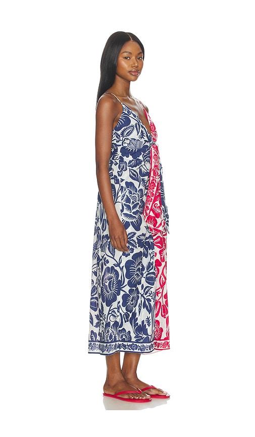 FARM RIO CASHEW AND BIRDS LONG DRESS IN BLUE,RED.