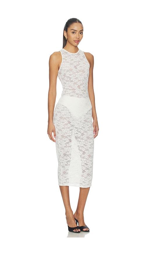 FLEUR DU MAL LE STRETCH LACE RACER TANK DRESS IN IVORY.