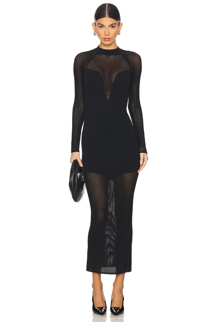 KNIT MESH LONG SLEEVE MAXI DRESS