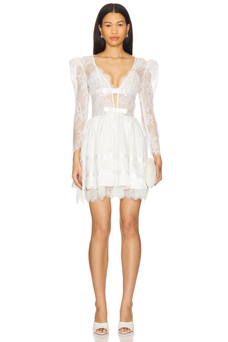 Delicate floral lace and intricate embroidery bring timeless romance to this white babydoll mini dress. The relaxed fit and V-neckline complement puffed long sleeves and layered ruffled hem, creating a sophisticated silhouette perfect for spring and summer evenings. Adjustable and detachable bralette straps add versatility, while the hidden back zipper and button loop closure ensure a seamless finish. Ideal for cocktail parties, date nights, or elegant night outs, this dress pairs ethereal design with modern comfort for a truly standout look.