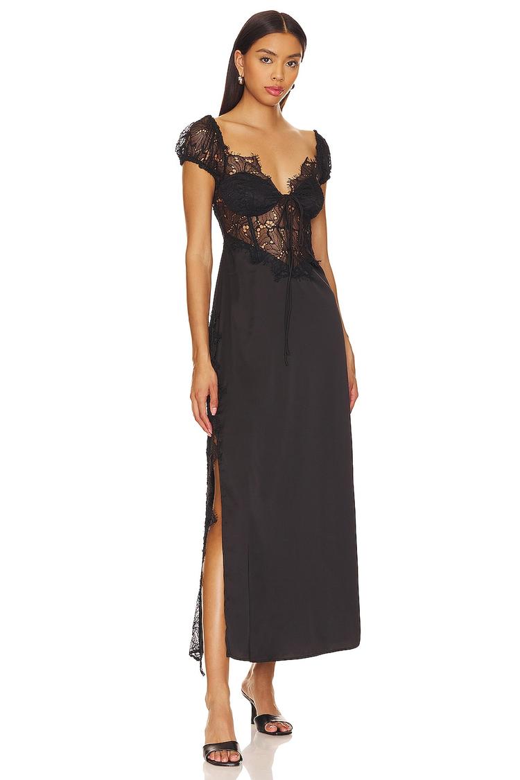 Delicate lace trim accents the bodice and cap sleeves of this matte black slip dress, creating a sensual silhouette with a slim fit and sweetheart neckline. Crafted from smooth polyester and spandex satin fabric, the maxi length flows gracefully with a subtle side slit that adds movement and allure. Hidden back zipper and hook closure maintain the sleek lines. Ideal for cocktail events, date nights, or chic evening outings, this elegant modern dress blends sophisticated detail with comfortable stretch for all-weather wear.