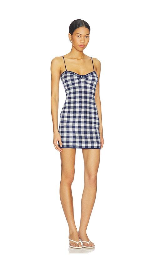 FOR LOVE & LEMONS GINGHAM KNIT MINI DRESS IN NAVY.