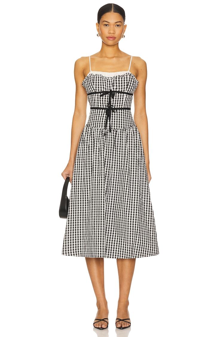 Sunlit brunches and date nights come alive in this classic fit and flare midi dress featuring a timeless black and white gingham pattern. Crafted from a breathable cotton-polyester poplin blend, it offers a fitted bodice with a straight neckline and delicate spaghetti straps that are adjustable for comfort. The dress fastens with a concealed back zipper and is detailed with a charming bow at the front waist, enhancing its romantic appeal. Perfectly suited for spring and summer occasions, this midi-length silhouette flatters with a clean hem and versatile styling for cocktail events and casual chic outings alike.