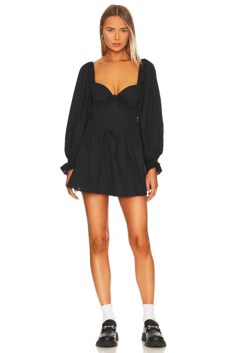 Effortless charm exudes from the Ruth Mini Dress with its matte black organic cotton fabric and romantic babydoll silhouette. The sweetheart neckline and long blouson sleeves with cinched cuffs create a soft yet structured look, while the back cut-out with tie detail adds a playful touch. Featuring a ruffled hem that enhances its flirty mini length, this loose-fit dress is perfect for casual days, brunches, or date nights. Made with breathable cotton, it offers comfort and style in equal measure across spring, summer, and autumn seasons.