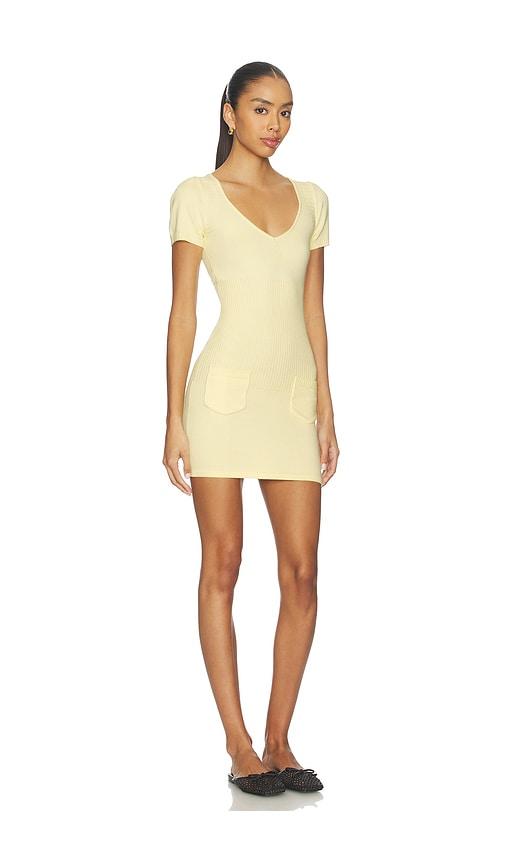 FRANKIES BIKINIS DAPHNE CLOUD KNIT MINI DRESS IN YELLOW.