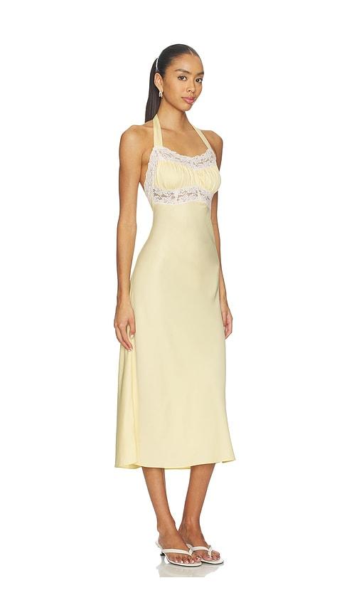 FRANKIES BIKINIS DARCY SATIN MIDI DRESS IN YELLOW.