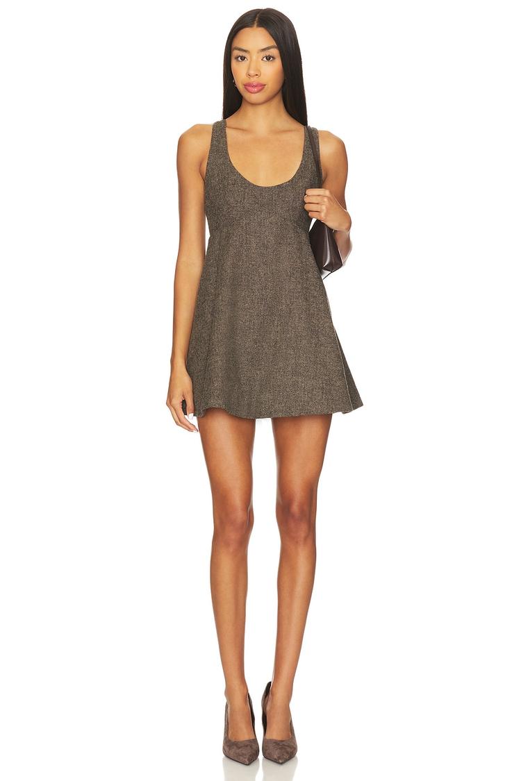 Effortlessly chic, this mini swing dress features a matte brown hue with a loose fit and a flattering U-neckline. The sleeveless design and wide straps complement its casual bohemian vibe, while the tie-back detail at the open back adds a playful touch. Crafted from a cozy polyester and wool blend, this fully lined dress is perfect for cooler autumn and winter days. Ideal for casual outings, date nights, or evening events, it offers easy pull-on styling and a clean hemline for a timeless look.