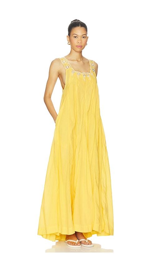 FREE PEOPLE TO THE MOON MAXI DRESS IN YELLOW.