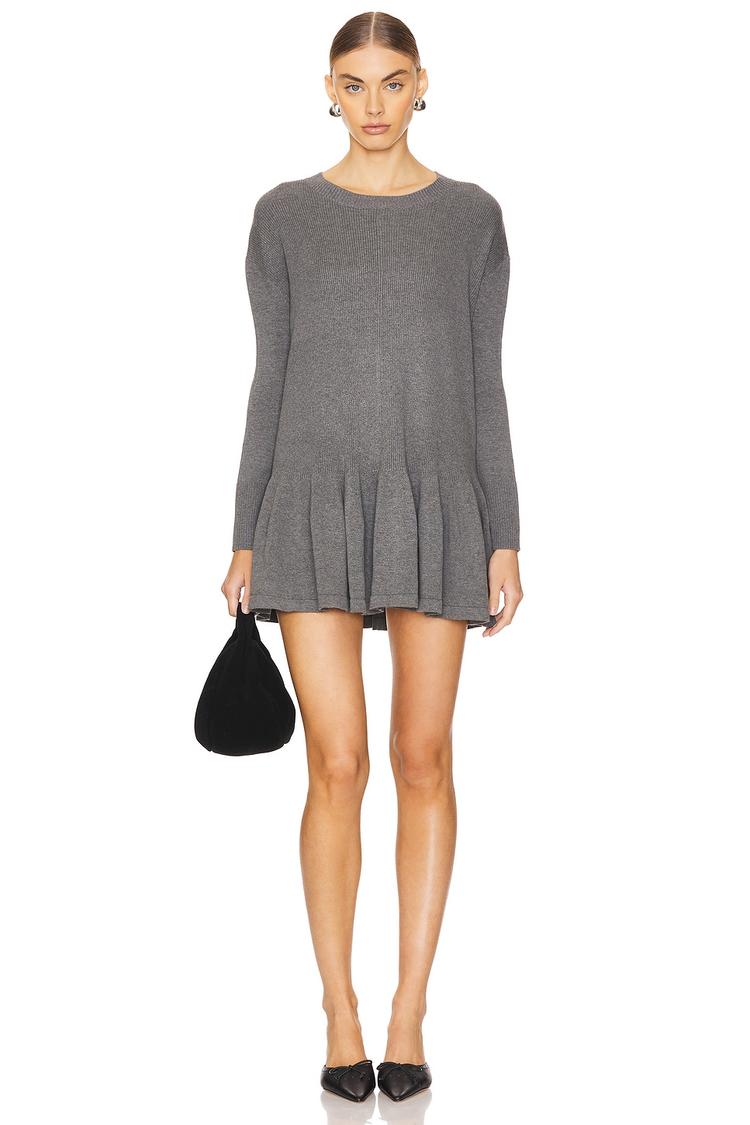 Soft knit fabric with a cozy matte gray hue forms this loose-fitting mini sweater dress featuring a classic round neckline and long regular sleeves. The pleated hem adds subtle movement and feminine flair to the simple silhouette. Easy to pull on and perfect for layering, it suits autumn and winter days effortlessly. Ideal for casual outings, brunch dates, and relaxed streetwear looks, this versatile dress embraces minimalist chic with comfortable style.