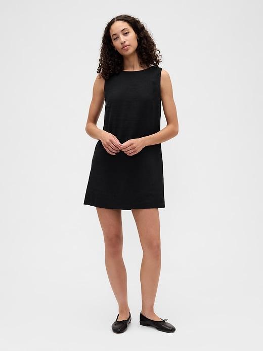 LINEN-BLEND APRON MINI DRESS