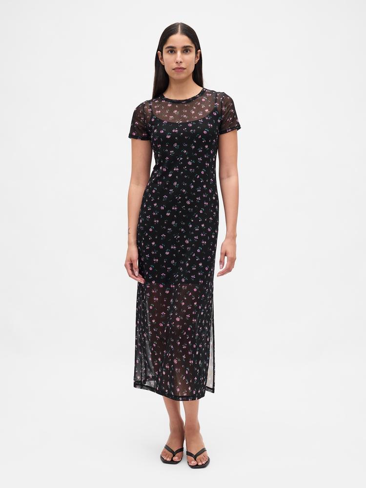 Sheer mesh fabric and a sleek sheath silhouette define this chic maxi dress, perfect for summer evenings and casual nights out. Featuring a classic round neck and half sleeves, it offers a fitted shape that flatters the figure while the all-over white polka dot print adds playful charm. The clean hemline and covered back complete the modern look, making it versatile for date nights or stylish casual gatherings. Crafted from lightweight polyester mesh, this dress blends comfort with contemporary style effortlessly.