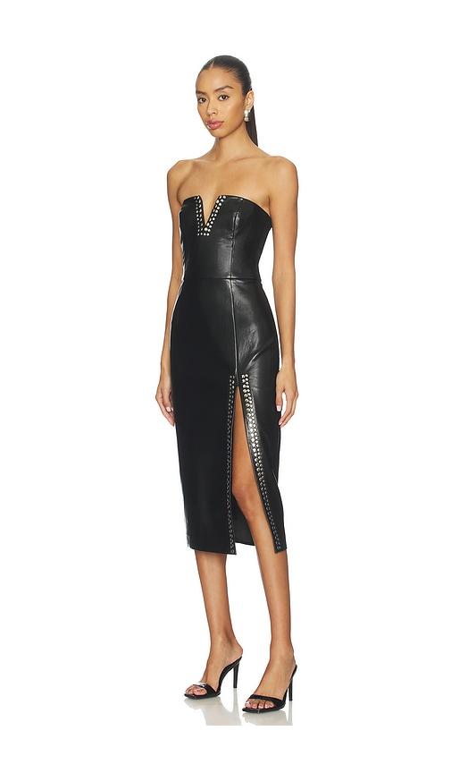 GENERATION LOVE ISABEL STUDDED FAUX LEATHER DRESS IN BLACK.