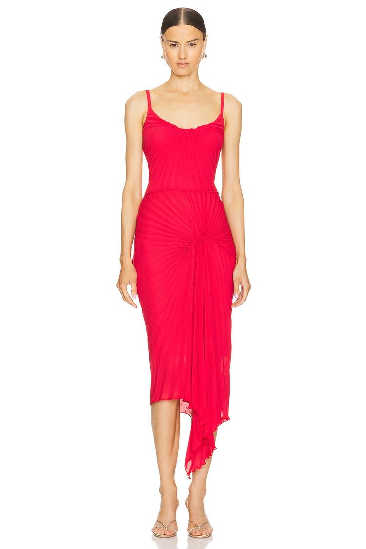 red midi dress