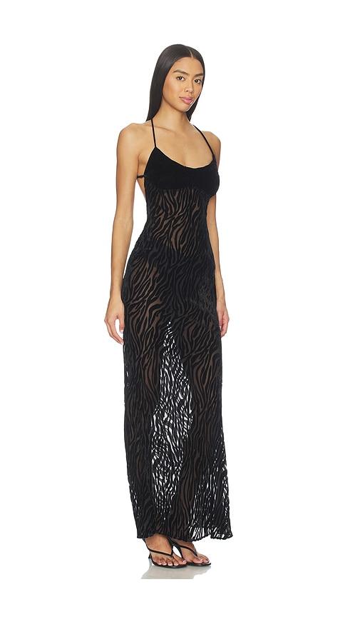 GUIZIO BURNOUT VELVET MAXI DRESS IN BLACK.