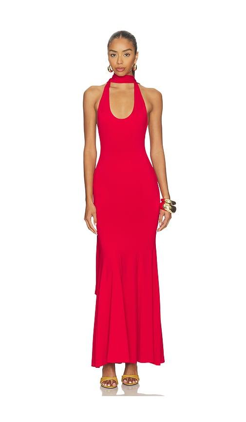 GUIZIO SCARF OPEN NECK DRESS IN RED.