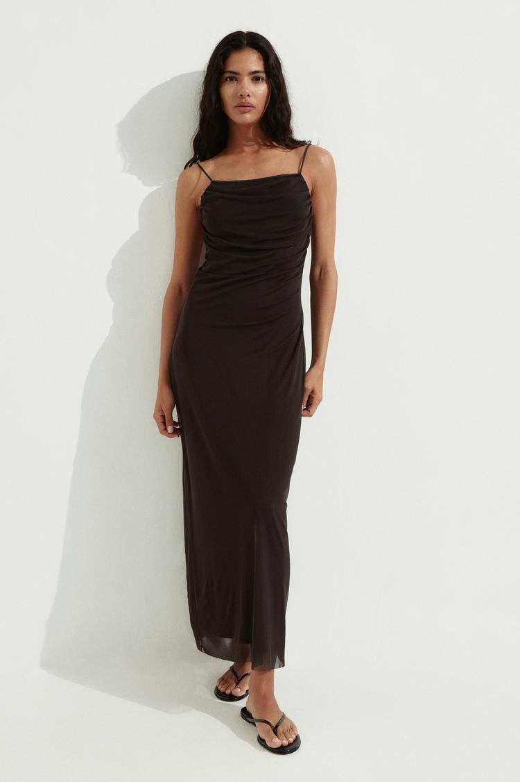 DRAPED MESH STRAPPY DRESS