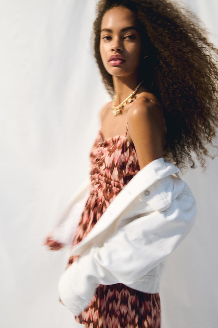 Soft matte brown hues blend seamlessly in this slim-fitting slip dress featuring a straight neckline and delicate spaghetti straps. The midi length and abstract print create a modern yet effortless vibe perfect for spring and summer days. Its lightweight polyester fabric ensures comfort and breathability, making it an excellent choice for casual outings, brunch dates, or intimate evenings. The clean hemline and covered back add to its minimalist charm, making this dress a versatile staple for your warm-weather wardrobe.
