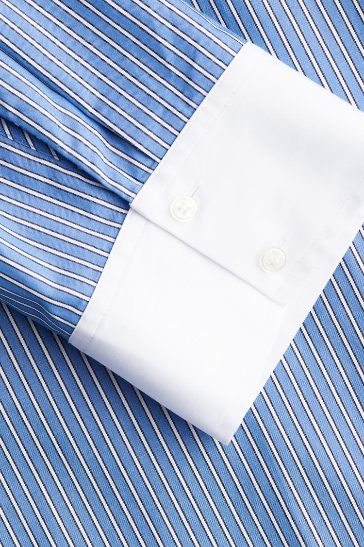 Soft cotton twill and relaxed tailoring shape this classic shirt dress in a fresh blue and white striped pattern. The mini length and three-quarter cuffed sleeves with buttons lend a casual yet polished vibe, while a rounded front hem and straight back hem add modern detail. Perfect for spring and summer days, it transitions effortlessly from brunch to workwear or casual outings. The back yoke features a box pleat, enhancing ease of movement and style. A timeless staple blending comfort and classic design.