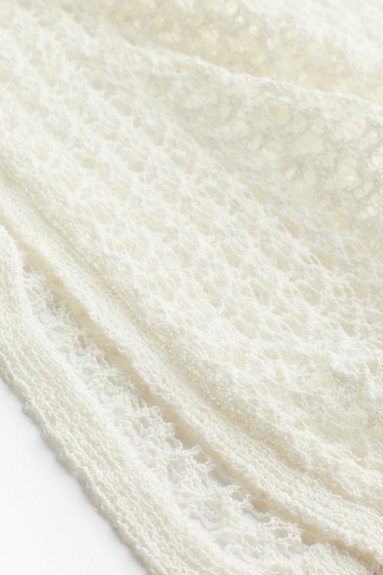 A breezy off-white crochet-look knit cover-up dress perfect for summer beach days and casual vacations. This midi-length piece features a loose fit with narrow spaghetti straps and a flattering low-cut V-neckline. The straight hem is accented with a high side slit, offering effortless movement and a touch of allure. Designed as a slip-on with an unlined, breathable knit fabric, it combines comfort with a bohemian casual chic vibe, making it ideal for beach outings, vacations, or relaxed casual wear.