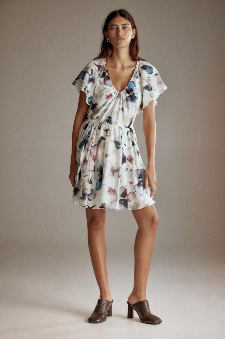 Soft and airy, this fit and flare dress features a flared skirt and romantic flutter sleeves that create an effortlessly feminine silhouette. The delicate floral print in blues, pinks, and purples pops against a crisp white base, while ruffled details along the sleeves and hem add charming texture. Crafted from lightweight polyester, it’s perfect for spring and summer occasions like casual brunches, date nights, or relaxed weekend outings. The flattering V-neckline and above-knee length make it a versatile piece that balances comfort and style with ease.