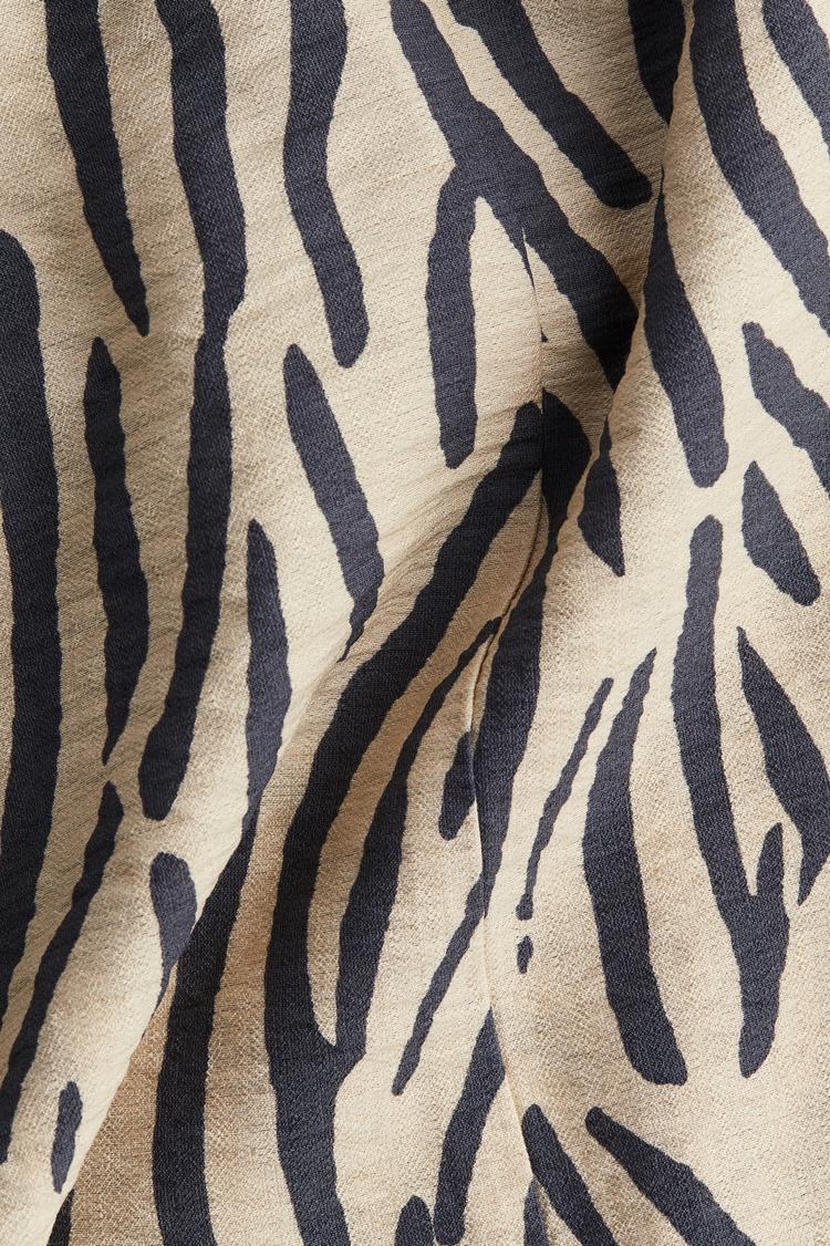 A sleek silhouette meets modern abstraction with this mini shift dress featuring a square neckline and tie shoulder straps for a delicate touch. Crafted from smooth silk satin, the dress offers a regular fit that skims the body effortlessly. Its all-over abstract pattern in matte black contrasts elegantly against a beige base, perfect for summer brunches, date nights, or stylish evenings out. The concealed side zipper with hook-and-eye closure ensures a seamless look, while the clean straight hem adds to its minimalist appeal.
