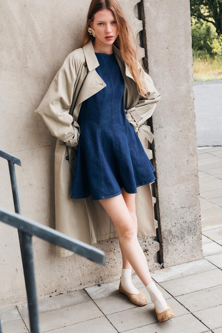 FLARED-SKIRT DENIM DRESS