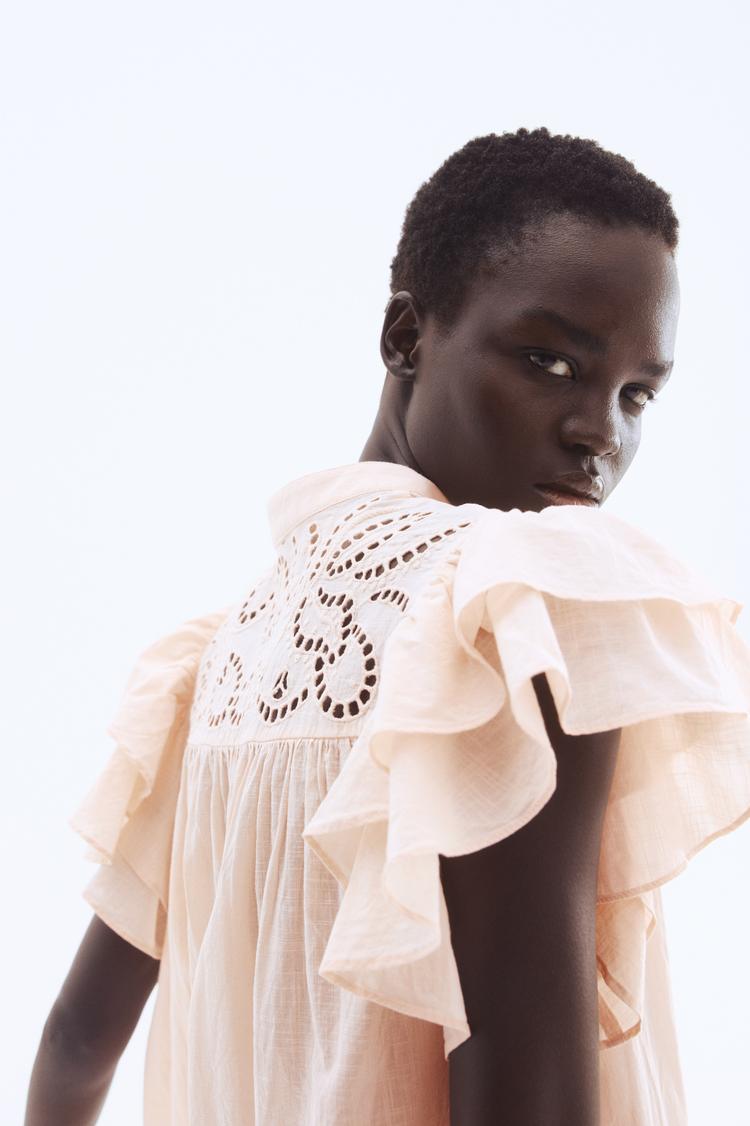 FLUTTER-SLEEVE DRESS WITH EYELET EMBROIDERY