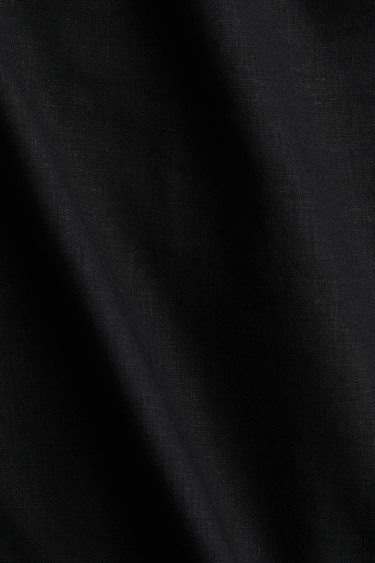 Soft linen blend fabric and a minimalist slip dress silhouette create a breezy, open-back style perfect for warm weather. Featuring a deep V-neck and delicate spaghetti straps that tie at the back, this loose-fitting mini dress offers effortless comfort and casual chic appeal. Ideal for beach days, vacation strolls, or relaxed summer outings, its matte black hue lends timeless versatility. The clean hemline and simple design make it an easy-to-style essential for sunny seasons.