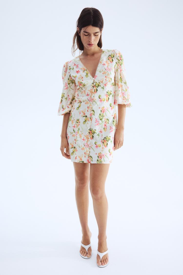 linen floral mini dress