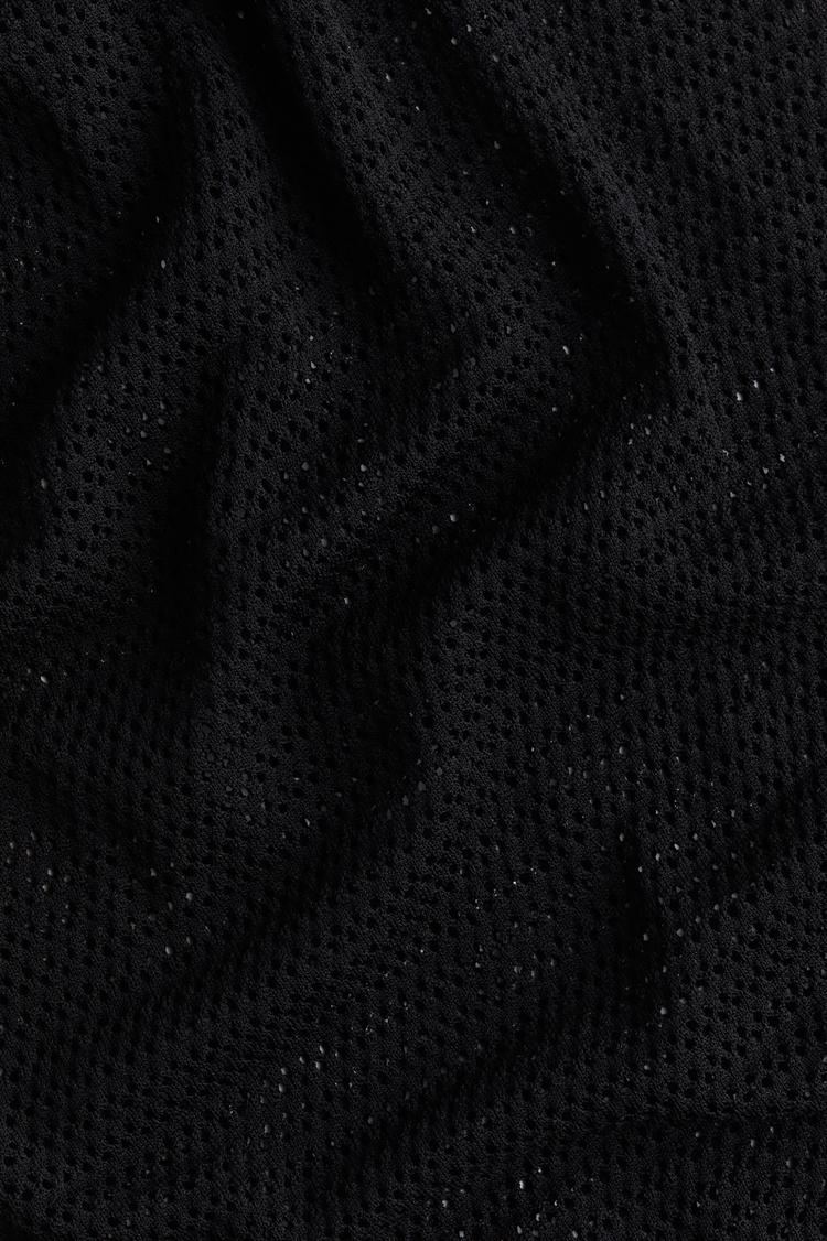 Short beach dress in a pointelle knit with picot-trimmed edges. Deep V-neckline with cut-out sections at the front and long, gently flared sleeves.