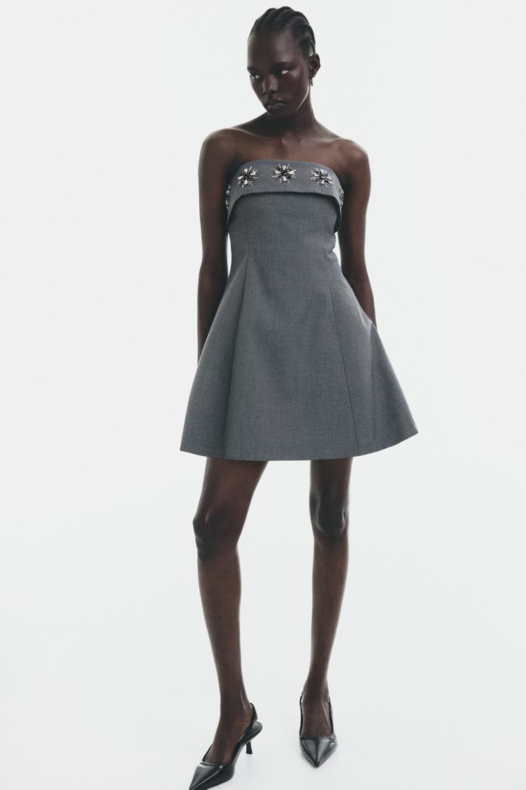 RHINESTONE-EMBELLISHED BANDEAU DRESS
