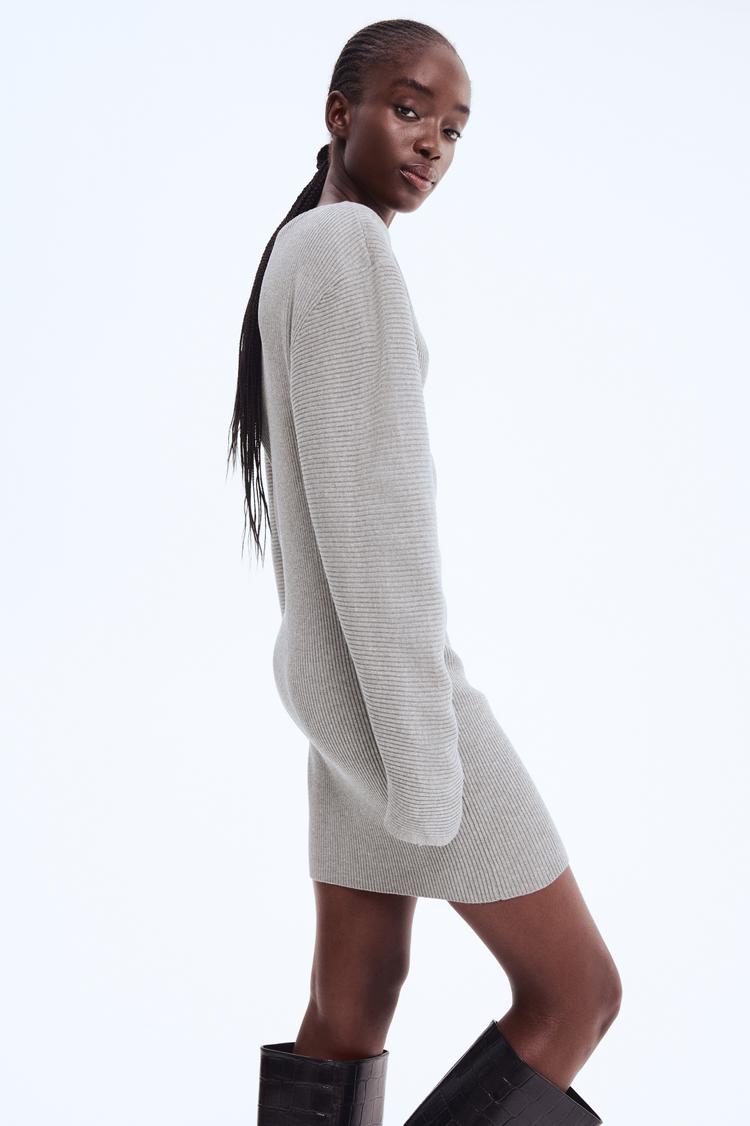 Soft rib-knit texture and a cozy long-sleeve silhouette create a versatile mini sweater dress perfect for autumn and winter. Featuring a classic round neckline and a clean hemline, this regular-fit dress offers casual chic vibes ideal for casual outings, workwear, or date nights. The matte beige tone adds understated elegance, making layering with jackets or boots effortless for transitional weather styling.